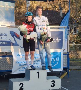 14 décembre: Couloumiers Chaniers (24) – cyclo cross des Crouchaux: Après sa 2ème place à son premier cyclo-cross, première victoire de la saison pour Amélie Laquèbe.