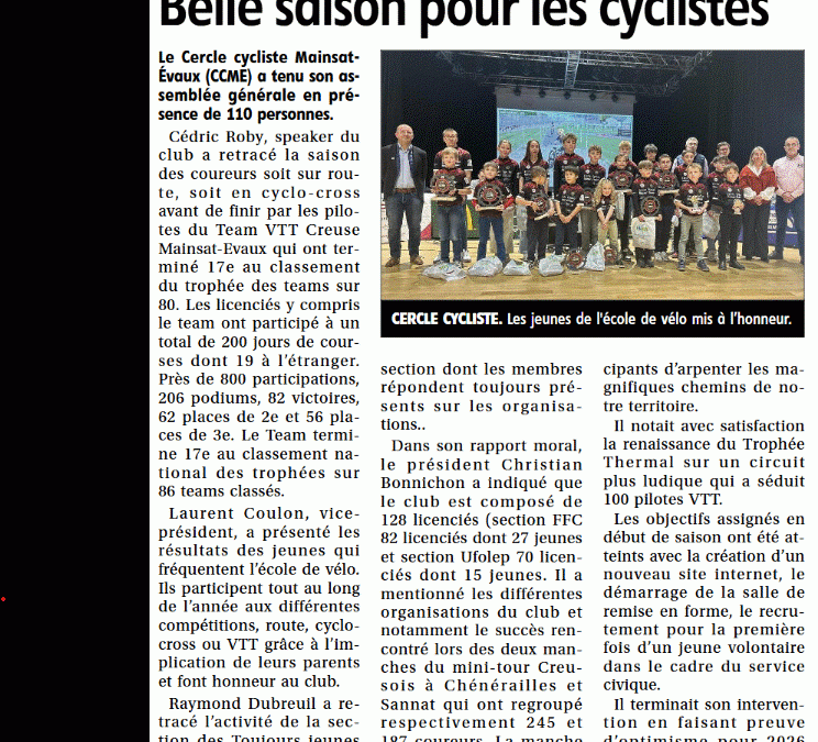 Cyclo-cross: derniers résultats – UFOLEP à St Marc à Frongier – FFC à Seynod (74) et en Espagne pour Amélie Laquebe